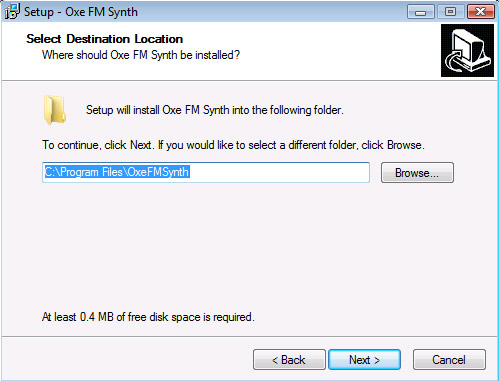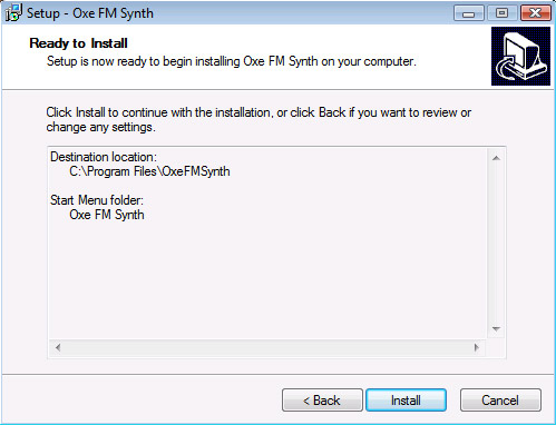 4. Oxe FM synth will now be ready to install. Select Install to continue.
