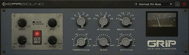 The GRIP has two main sections, a valve drive to the left, and a VCA, a pretty modern sounding compressor, to the right.