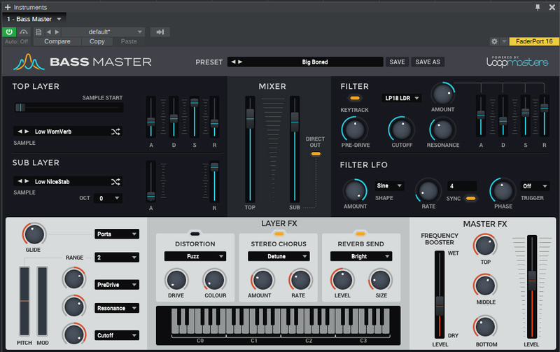 If you are creating House, Trap, Hip-Hop, D&B, Urban Chill, Dub-Step, Reggaeton, Industrial, Psytrance, Trapstep, Trance, any kind of EDM, you’ve probably heard of Loopmasters, and might even have some of their samples. But you may not know that they now make a virtual instrument, a loop player called Bass Master, available as a 64-bit VST and AU plug-in. Since I’ve already got a number of ways to play/record bass in my studio, I wasn’t sure a dedicated bass playing module would really deliver anything new or exciting. Bass is bass, right?