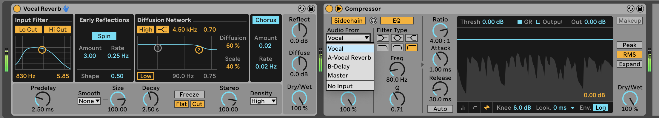 While that might seem counterintuitive, the vocal will duck only what’s happening in the reverb, and only when the vocal is making a sound.
