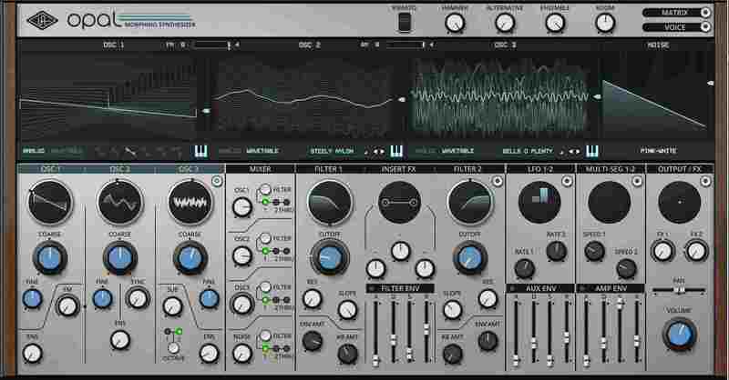 UA describes Opal as an analogue-meets-wavetable synth that takes the warmth and fullness of analogue equipment, combining it with the flexibility and versatility of wavetable synthesis. With three oscillators, a noise section, two morphing filters, vast modulation possibilities and inbuilt UAD effects, the mileage one can get out of Opal is impressive.