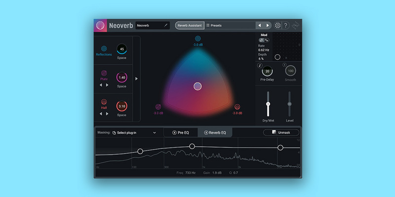 Another non-negotiable plugin type you’ll need to become accustomed to as a producer is reverb, and iZotope’s Neoverb is a friendly starting point. Reverbs add space and depth to a sound source mimicking a natural room environment. For example, imagine clapping your hands in a church hall, versus a small wardrobe. The echo produced will change the character of the sound quite a bit. Thanks to reverb plugins like Neoverb, we can digitally apply these echos in our DAWs.