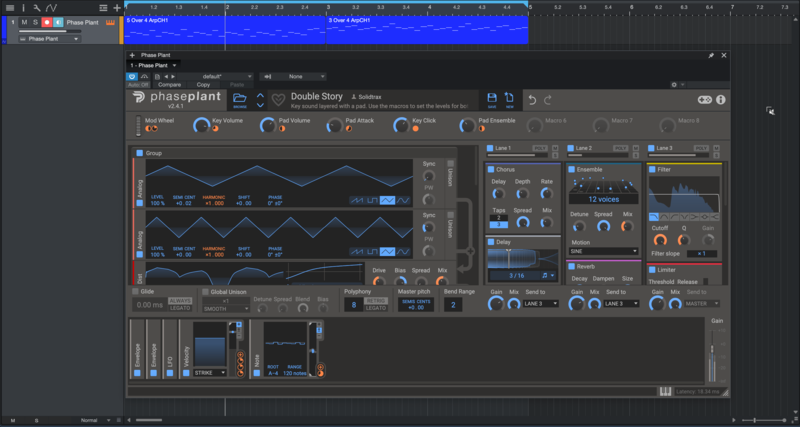 Here in Phase Plant, we’ve got a great Keys patch from the Factory Bank, Double Story. It uses Chorus, Delay and Ensemble to create some lush textures underneath the notes as they play.