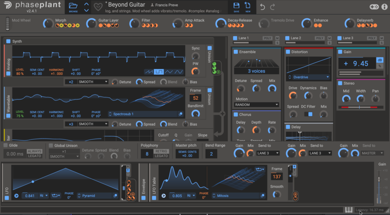 Here we’re going to tear down the modulation for another Phase Plant patch, Beyond Guitar. It starts with several modulators, but we’re just going to strip them all out to leave nothing.