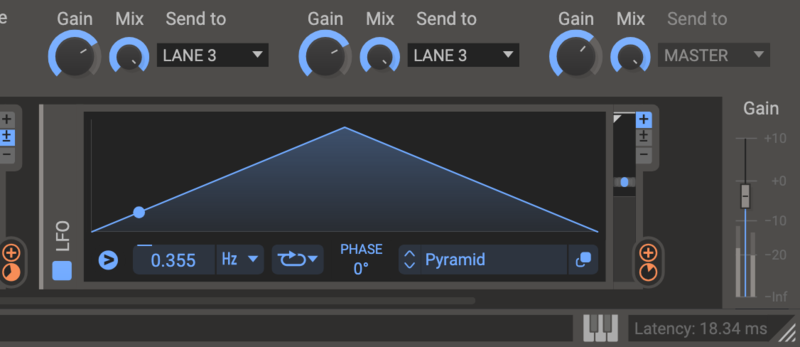 There’s also the option to detune a synth patch, which leads to a thicker sound. This usually requires the oscillators to be tuned to the same note before being slightly detuned by just a few cents, but we can get a hint of the character of that sound by detuning our +7 and -12 oscillators a little anyway.