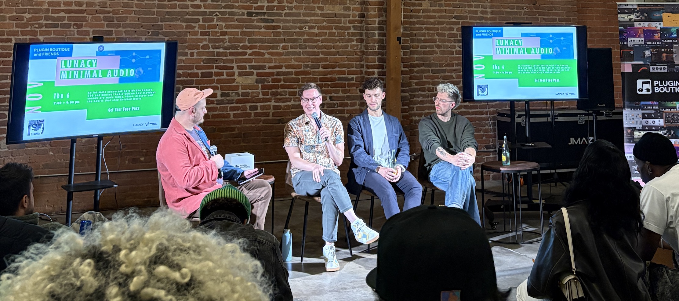 On November 6th, Plugin Boutique brought together some of today’s most forward-thinking sound designers and creative technologists for “Shaping Your Signature Sound – The Craft of Modern Sound Design with Minimal Audio & Lunacy.” Held in Los Angeles, the event featured an inspiring in-person conversation with Jake Penn (CEO & Co-Founder, Minimal Audio), Casey Kolb (CEO & Co-Founder, Lunacy), and Max Davidoff-Grey (Co-Founder, Lunacy), moderated by Matt Parad (Co-Founder, Jungle Audio