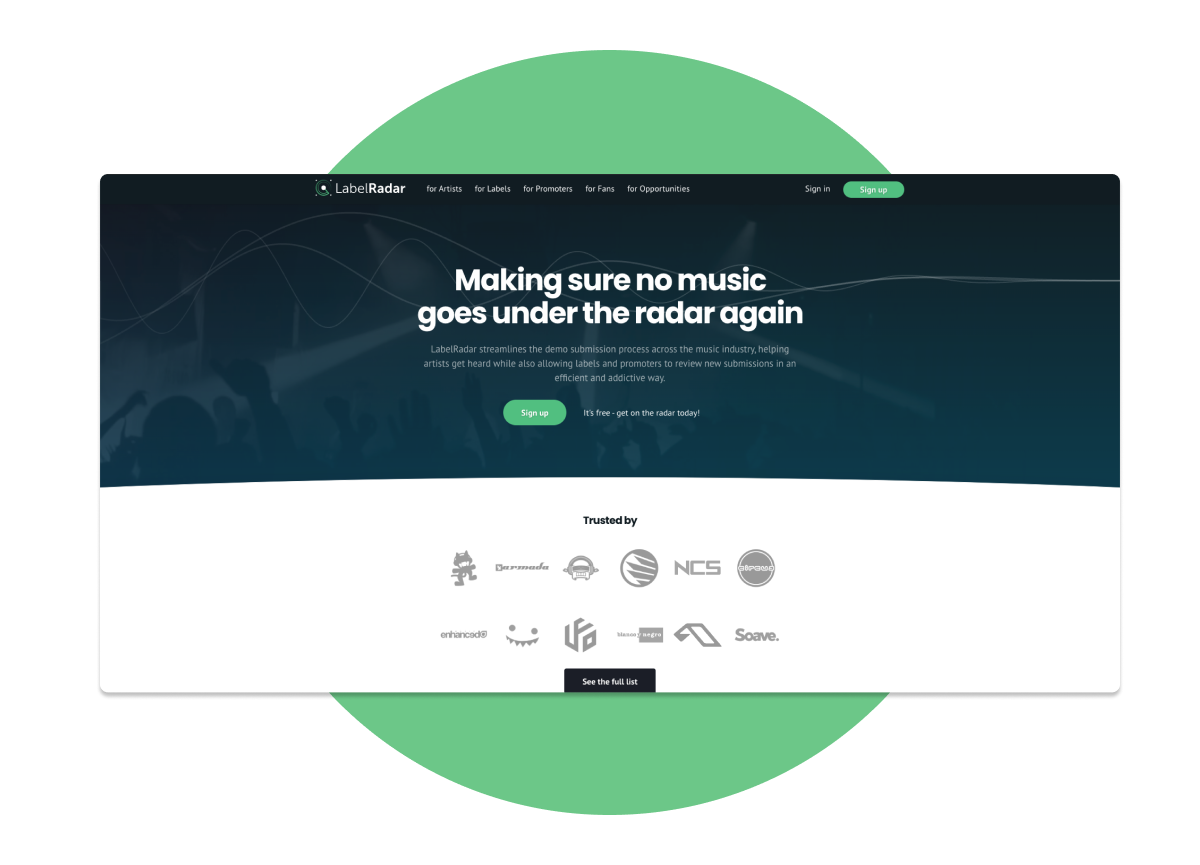 We have have collaborated with LabelRadar on an exclusive offer to help you accelerate your career and get your tracks heard! Submit your demos to a wide array of the best labels around, and get notified as soon as they listen. LabelRadar connects you with the right people and helps you take back control over demo submissions. Thousands of artists have had their tracks signed through LabelRadar, so start taking advantage of their award-winning platform and work smarter not harder.