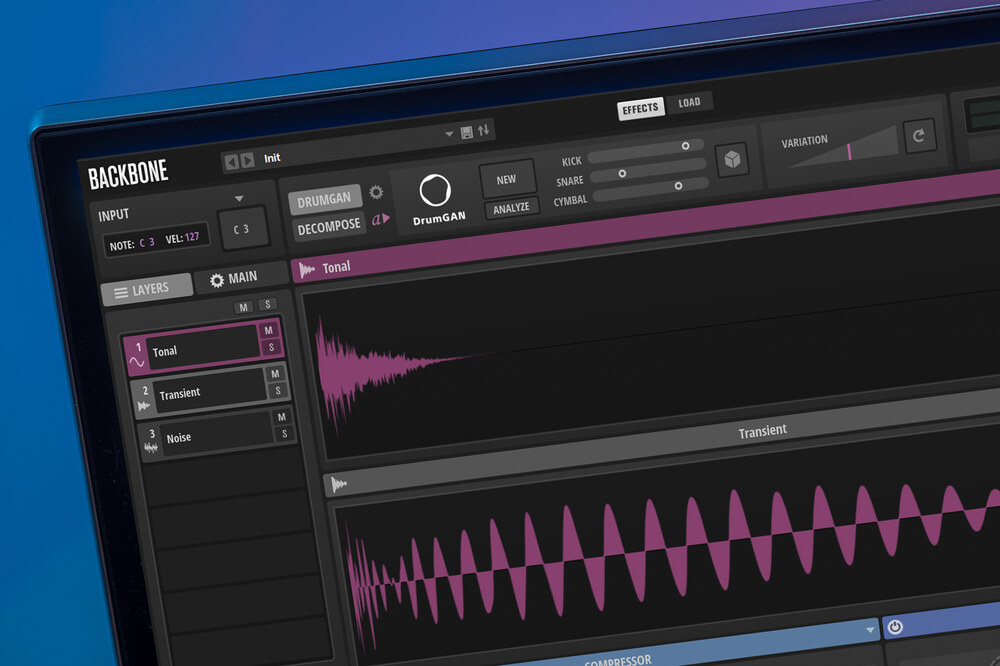 Backbone 1.5 now comes with DrumGAN, an innovative drum generator developed by Sony Computer Science Laboratories, Inc. (Sony CSL). Powered by artificial intelligence (AI), it creates new kick drum, snare drum and cymbal samples in a very fast, intuitive way. It also analyzes samples, can replicate them and create countless variations. DrumGAN is the perfect addition to Backbone for crafting new drum sounds entirely from scratch, while staying in your favorite sample editing environment.