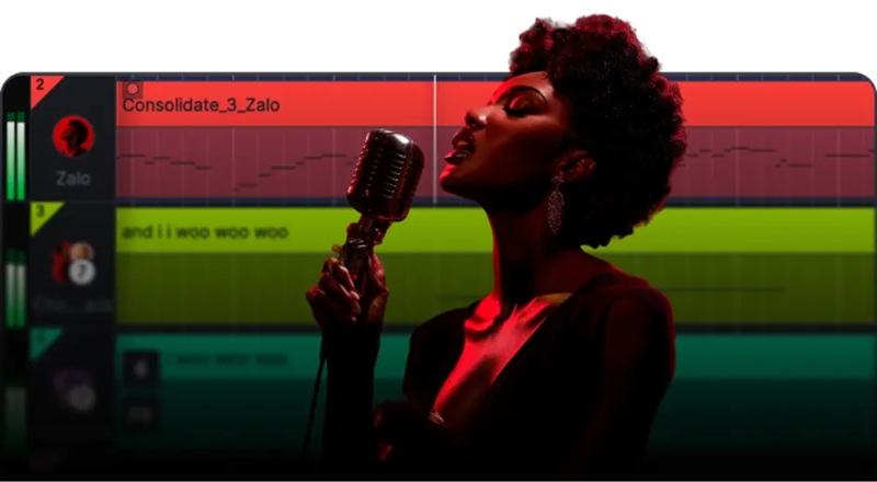 • AI Voice Changer – Morph voices into different vocal styles or even instrument sounds; create lead vocals, harmonies, and choral arrangements with royalty-free AI voice models.