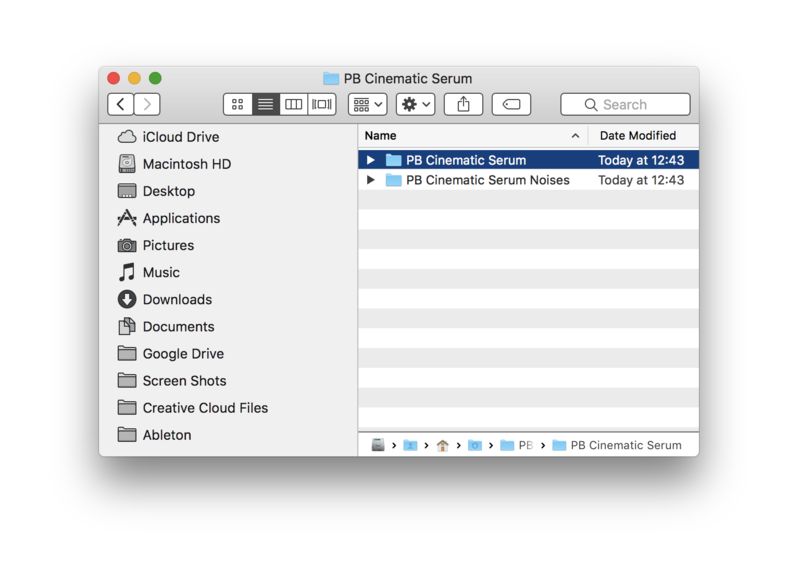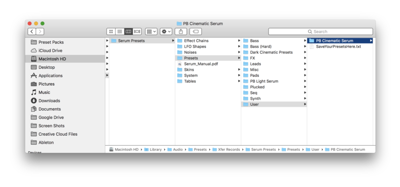 5. Locate the ‘Presets’ folder, then the ‘User’ folder contained within it > Copy and paste the folder titled 'PB Cinematic Serum' into the 'User' folder.