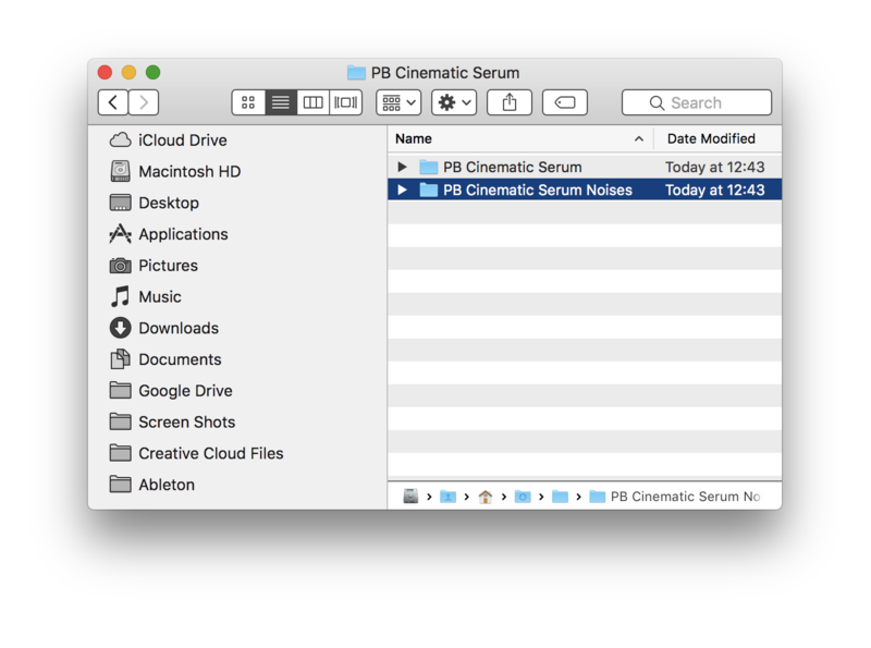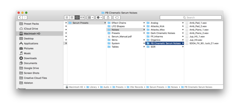 6. Locate the 'Noise' folder > Copy and paste the folder titled 'PB Cinematic Serum Noises' into the 'Noises' folder.