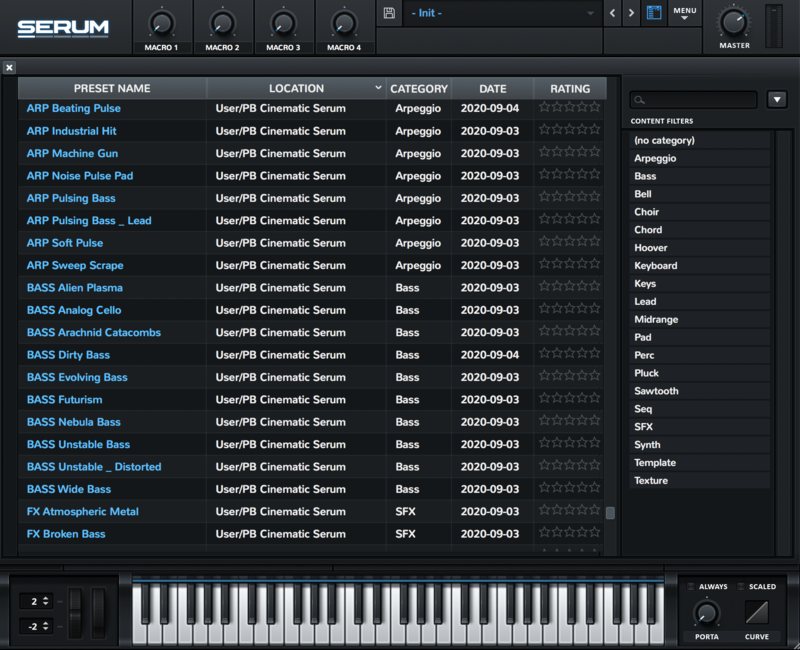 Introducing Serum Expansion Pack: Cinematic, a complete selection of arps, keys, leads, basses, pads and FX for creating all kinds of cinematic sounds with Serum.