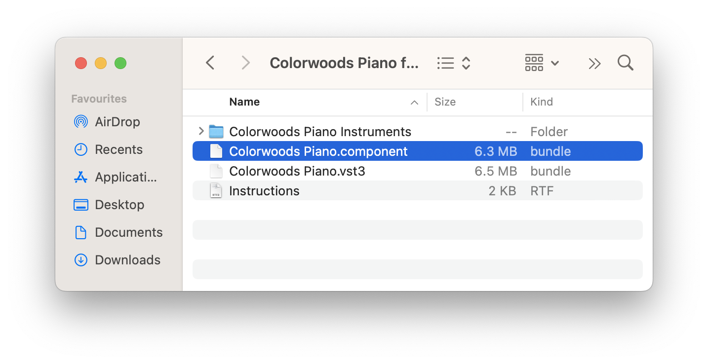 5. Paste the Colorwoods Piano .component file to the Components folder