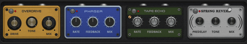 - Overdrive, for rich harmonic distortion inspired by classic guitar pedals