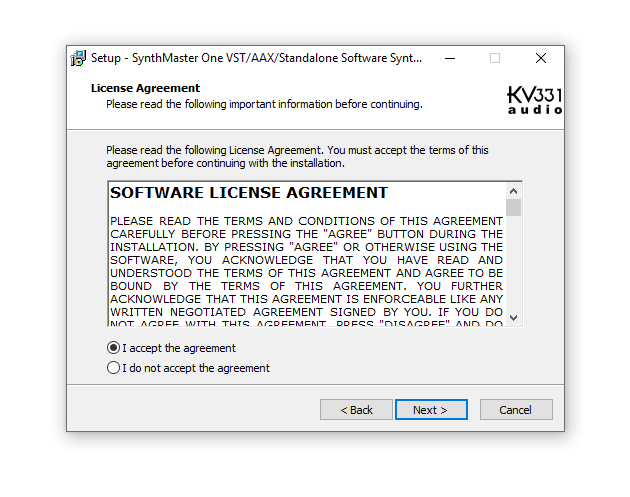 3. Select 'I Accept the Agreement' > Click 'Next'.