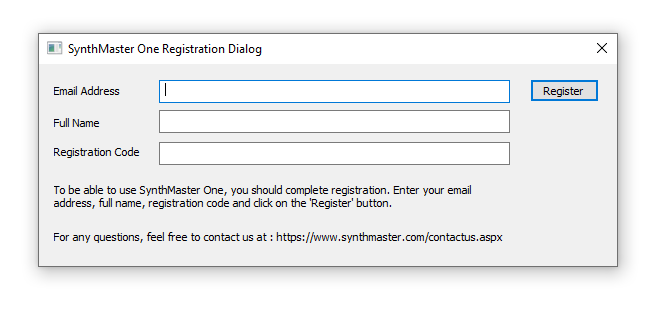 1. Open your DAW > Enter your Email Address, Full Name and Serial Number, found in your Plugin Boutique User Account > Click 'Register'.