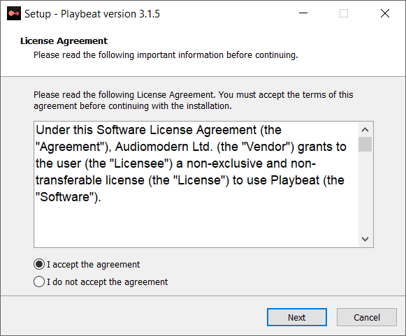 2. Select 'I Accept the Agreement' > Click 'Next'.