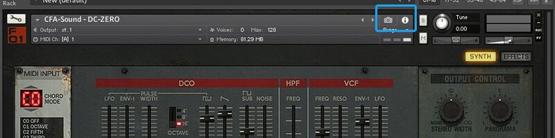 1. To switch to the presets view within Kontakt, click on the photo camera icon.