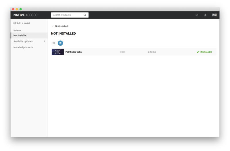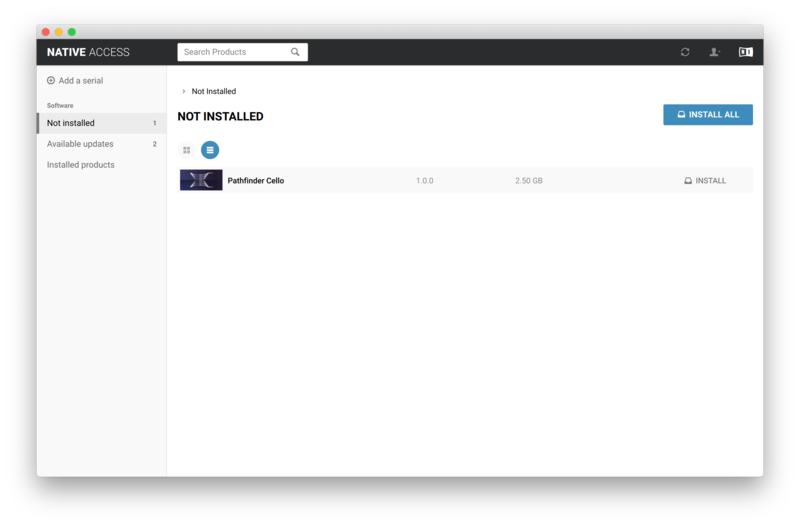 12. Click the 'Not installed' tab > Locate Pathfinder Cello > Click 'INSTALL'.