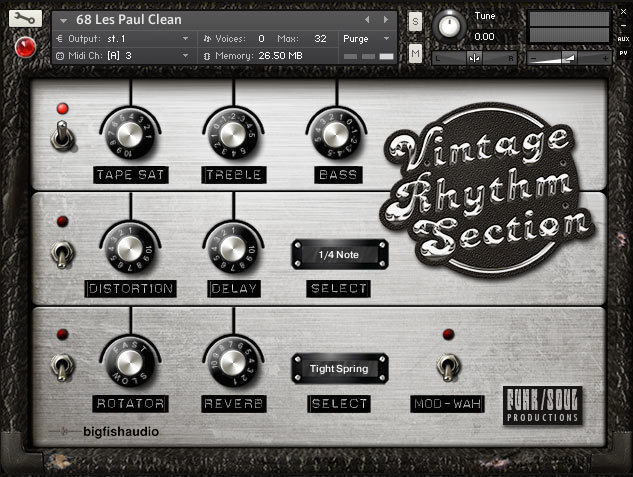 Vintage Rhythm Section is a virtual instrument for Kontakt 5 designed to emulate the classic rhythm section sounds of R&B, Soul, Funk, Jazz, and Rock records from the 1960's and 1970's.