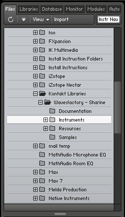 4. Locate the Sharine folder from the computer destination/folder that you saved it to > Select the Instruments sub-folder.