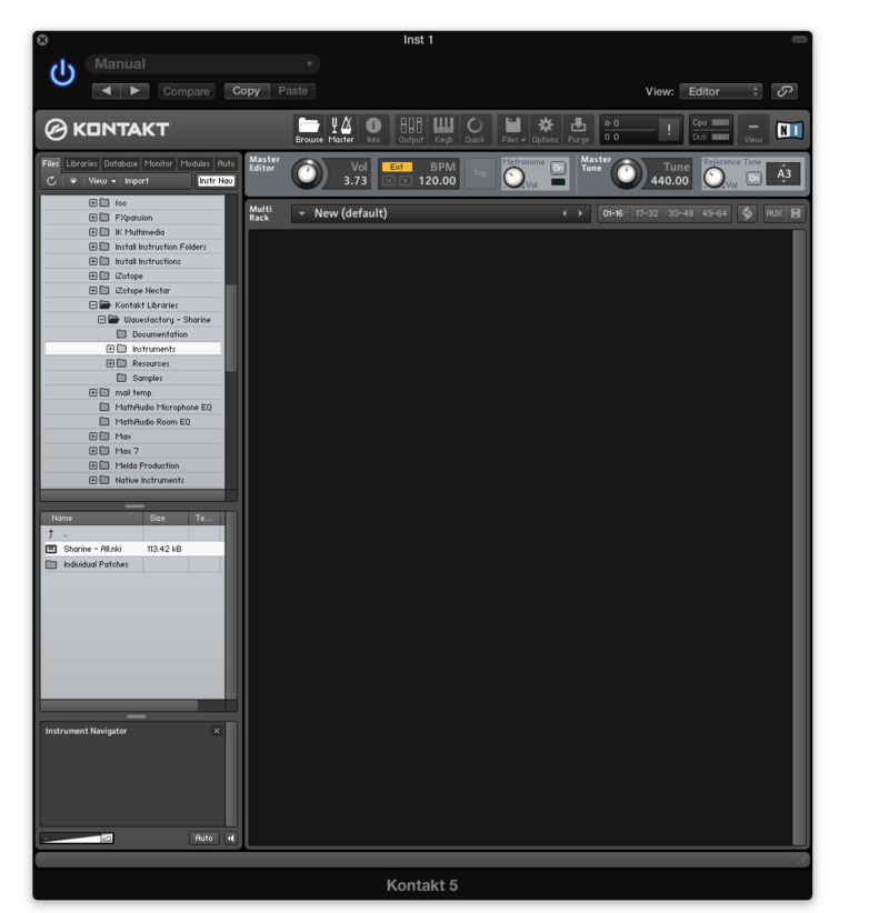 5. Once you locate the 'Sharine - All.nki' file, drag and drop it into the blank space which is available on the right hand side of Kontakt's interface.