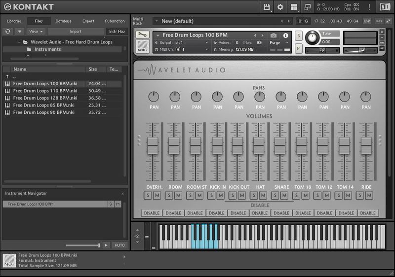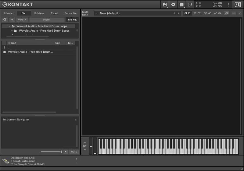4. Click and drag any NKI file into the main Kontakt window to load a patch.