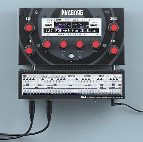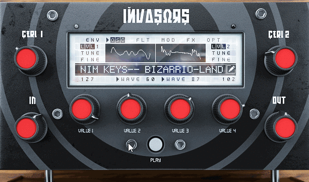 Invasors has 2 oscillators, each with 128 unique waveforms that can be combined in a variety of exciting new ways.