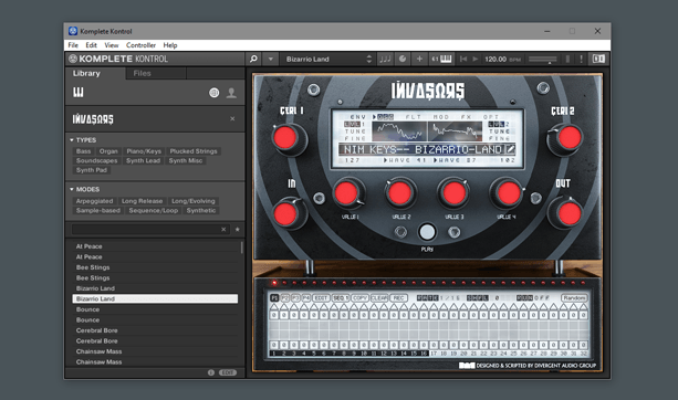 Invasors has been designed from the ground up to be completely controllable using any external 8 knob midi controller. Scroll through the menu screens just like a real synthesiser and select sub-menus to edit parameters. Or load it up in Komplete Kontrol and use your NKS keyboard to control every parameter in real-time
