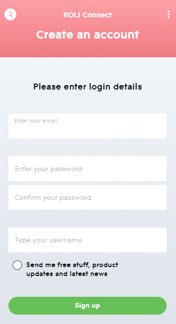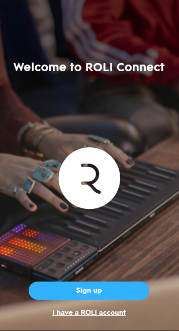 3. Open ROLI Connect > Click 'Sign up'. (If you already have a ROLI account click 'I have a ROLI account', sign in and skip to step 7).