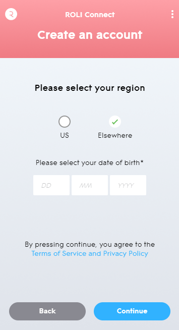 6. Select your region and enter your date of birth > Click 'Continue'.