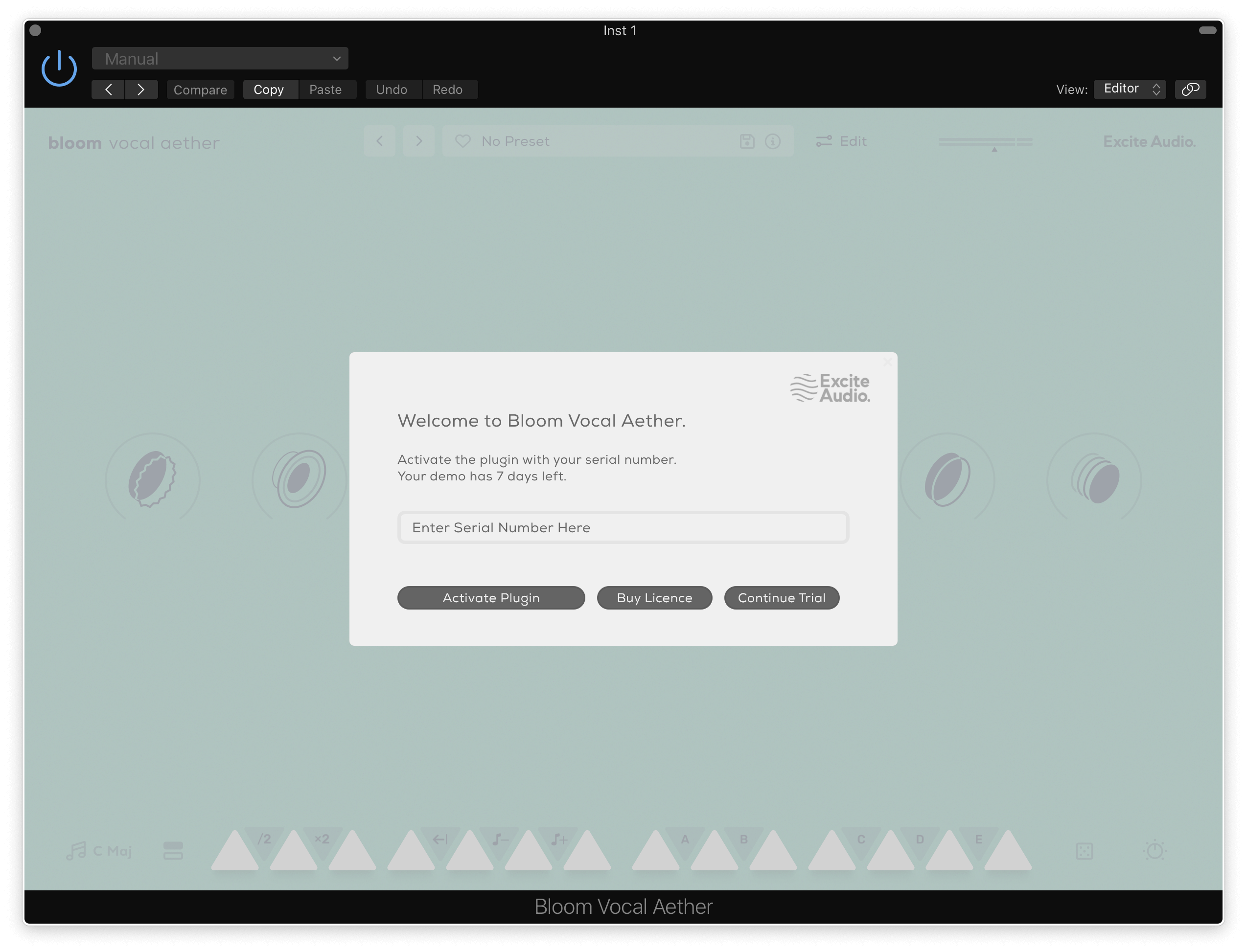 9. Open your DAW, locate Bloom Vocal Aether > Enter your serial number found in your Plugin Boutique User Account.