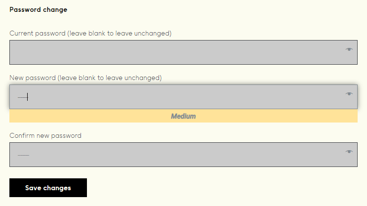 12. Enter your chosen password into the 'New password' box > Enter your password again into the 'Confirm new password' box > Click 'Save changes'.