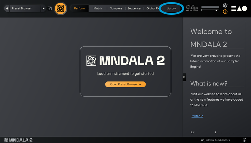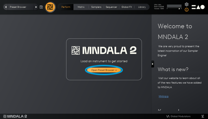 24. Insert MNDALA 2 on a new instrument track > Click 'Open Preset Browser'.