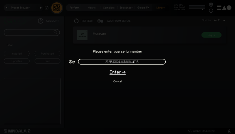 17. Enter your serial number found within your Plugin Boutique User Account > Click 'Enter'.