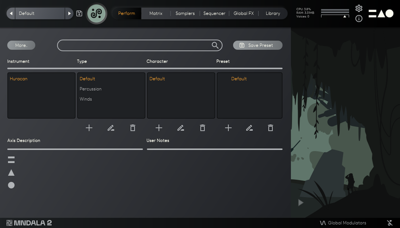 To get you started, MNTRA's team of sound designers has created a bank of over 40 expertly crafted presets. Utilizing the full power of their 3-axis RTPCs (Real-Time Parameter Controls), the interactive animated Perform View interface allows you to easily explore these complex presets.