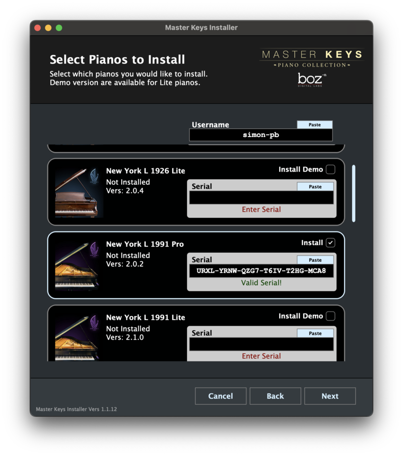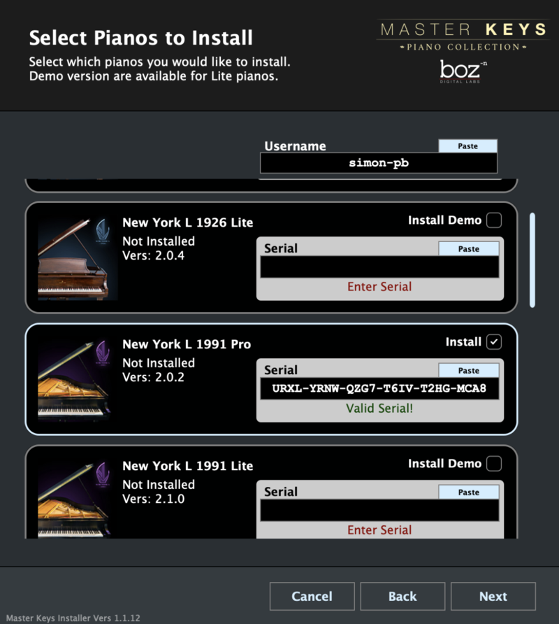 2. Follow the steps within the installer and when prompted, enter your username and serial number from your Boz Master Keys account.