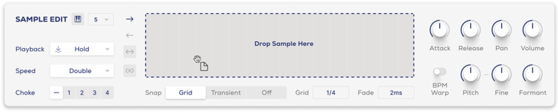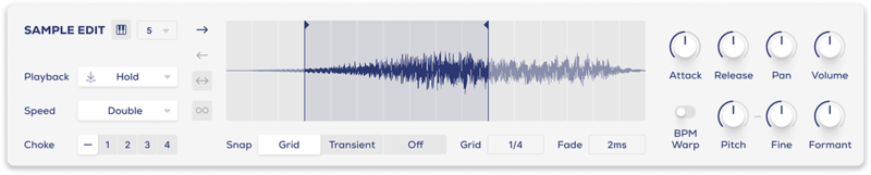 - Sample Crossfade, Attack, Release, Pan, Volume