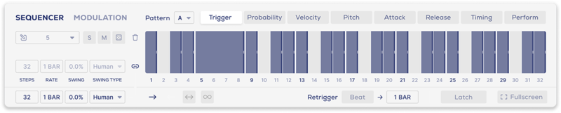 - Track Trigger, Velocity, Probability, Attack, Release, Timing and Perform