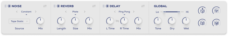 - 5 Main FX Parameters: Noise, Reverb, Delay, Lo-Cut, Hi-Cut