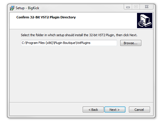 5. Choose and confirm the 32-bit plugin directory in which to save your software to > click ‘Next’.