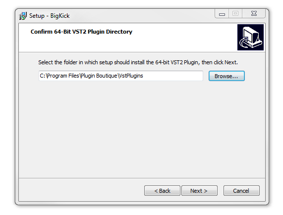 6. Choose and confirm the 64-bit plugin directory in which to save your software to > click ‘Next’.