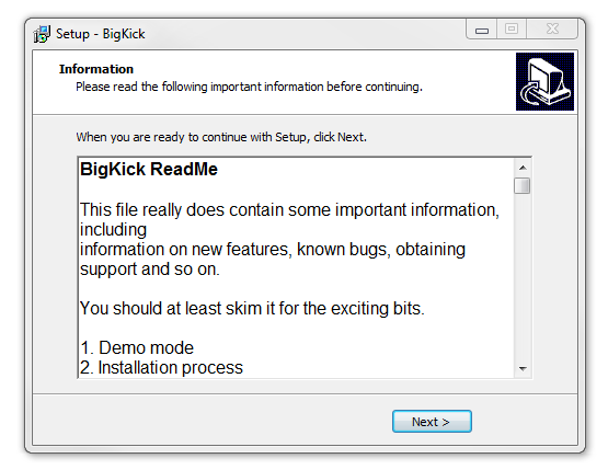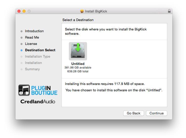 7. Select a computer location in which to install BigKick to > click ‘Continue’.