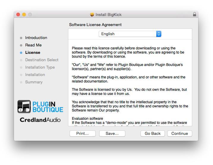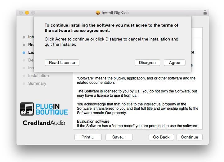 5.  Read the Software License Agreement and then click ‘Continue’.