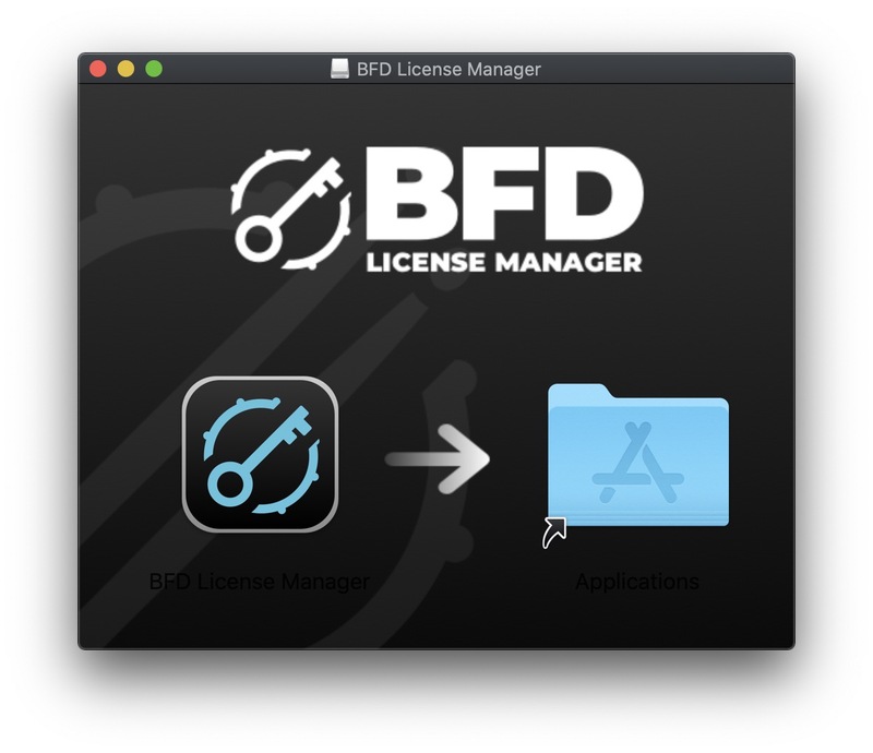 2. Run the BFD License Manager installer > Drag the BFD License Manager icon over to your Applications folder.