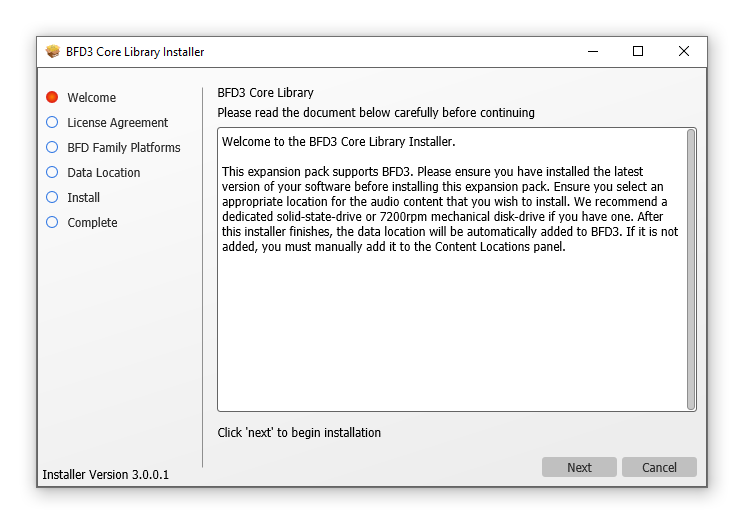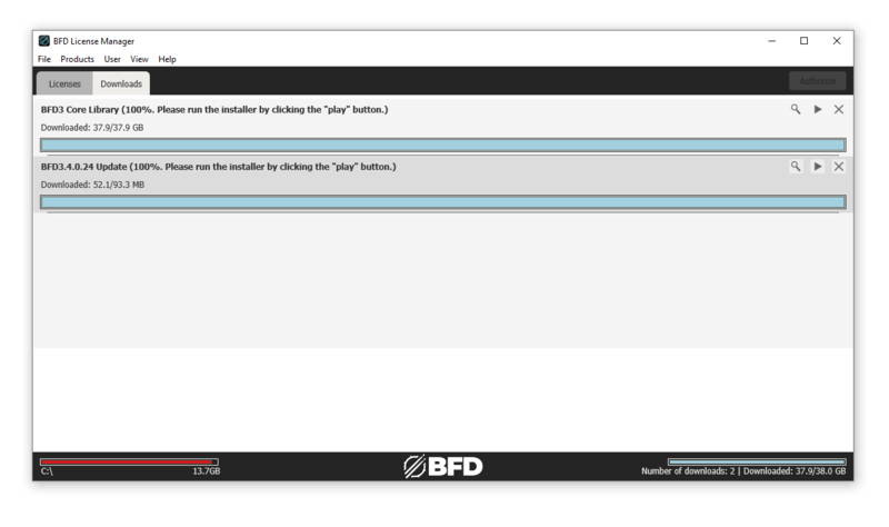 1. Go back to the BFD License Manager > Click on BFD3 > Click the download button by 'BFD Content Installer'. You will now download the BFD3 Core Library (this is a large download and may take a while).