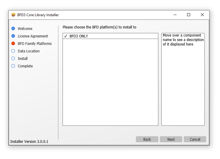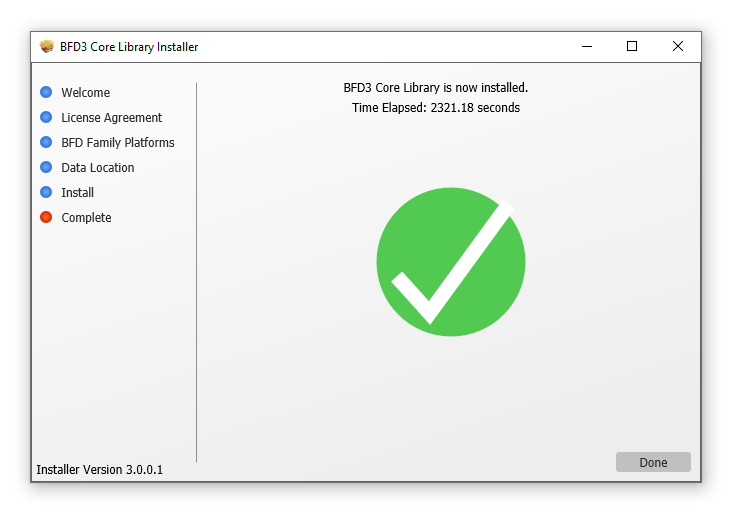 7. The BFD3 Core Library is now installed > Click 'Done'.