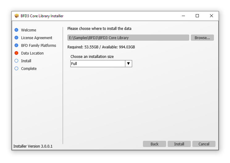 5. Choose where you want to install the library (if you have enough space, leave this as the default and install it on your main drive) > Select the installation size > Click 'Install'.