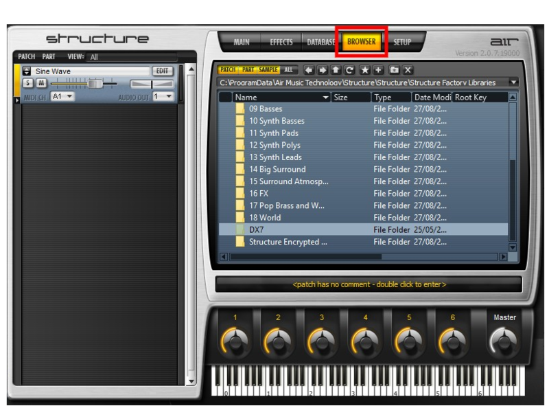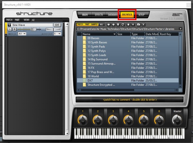 3. Open Structure 2 within your DAW. Click on the BROWSER tab and within Structure, navigate to the same folder (Program Files (x86) > AIR Music Technology > Structure > Favorites > Structure Factory Libraries).