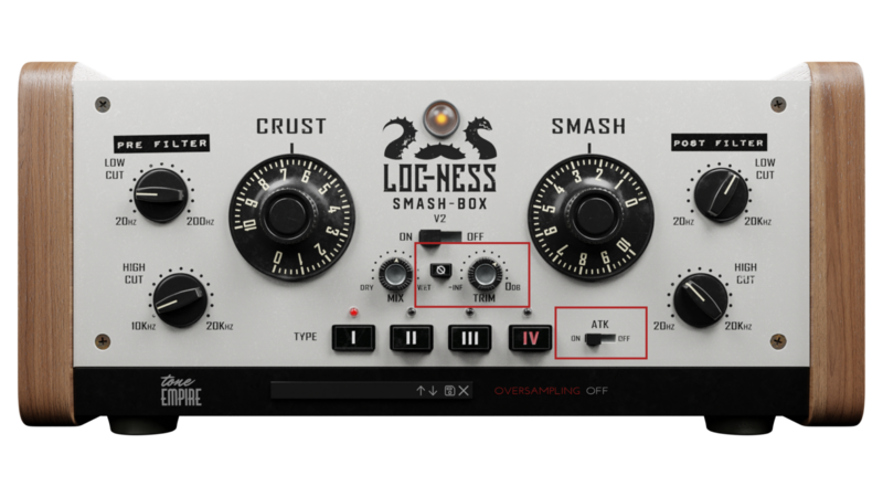 Loc-Ness 2 has low-cut and high-cut first-order filters to affect the signal going into the saturation and then compression section. Hence one can change the effect of “Crust” and “Smash” by the prefilter.